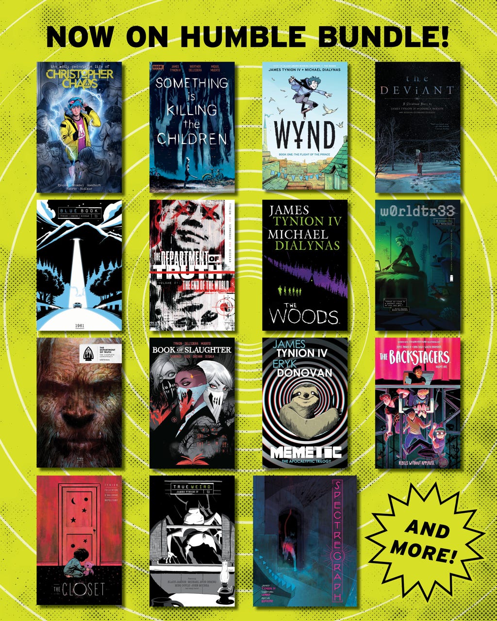 Tiny Onion is excited to announce a team-up with Humble Bundle for “The Frightening and Fantastic Worlds of James Tynion IV” bundle—in collaboration with comic book publishers BOOM! Studios, Image Comics, Dark Horse Comics, and DSTLRY—launching today, July 17. Partial proceeds from the bundle will benefit The Binc Foundation, a 501(c)(3) nonprofit dedicated to assisting comic book retailers and booksellers across the United States with support for employees, owners, and their families experiencing unexpected financial crises.